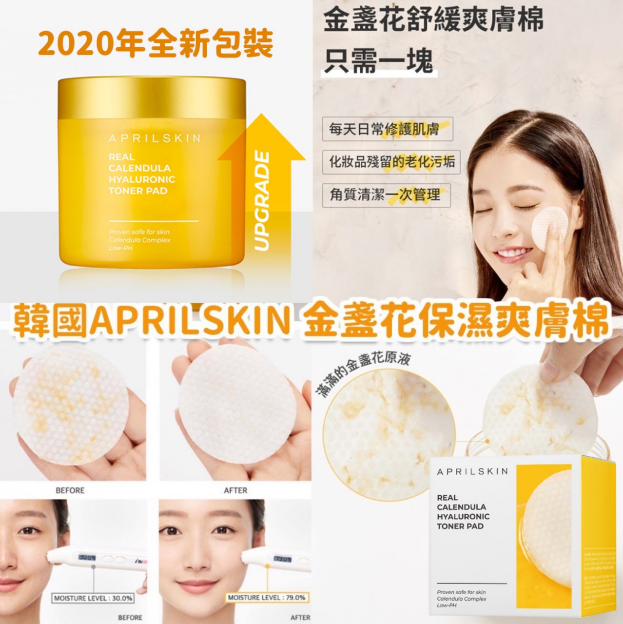 Aprilskin 金盞花保濕爽膚棉有別於市面上一般的清潔棉,每塊都滲透著80%的金盞花萃取物的保濕爽膚水,達至水油平衡的功效。